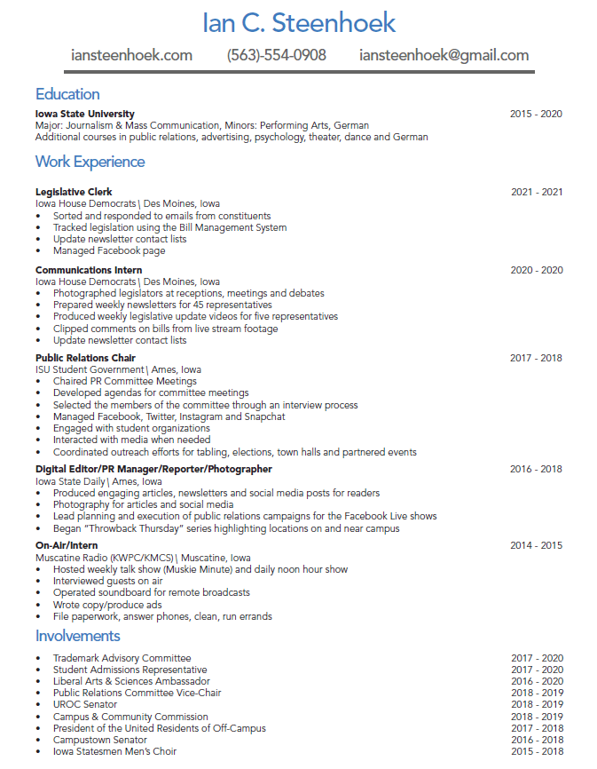 Below you will find my resume, both a screenshot to view and a file link to download. Stay tuned for an acting resume that also features my emcee and voice talent work!